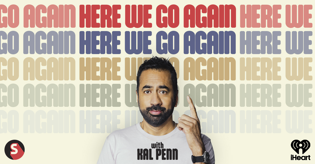 NEW YORK – October 14, 2025 – iHeartPodcasts, the No. 1 podcast publisher globally according to Podtrac, and SNAFU Media, today announced "Here We Go Again,” a new original podcast hosted by actor, writer and producer Kal Penn. Premiering October 21, the series will connect today’s biggest headlines to mirror images from throughout history, with a fresh dose of satire, insight, and optimism. The show will be produced by SNAFU Media, a partnership between Ed Helms’ Pacific Electric Picture Company and FilmNation Entertainment, in association with Kelly and Kelly. Fans can listen to the trailer now, HERE.